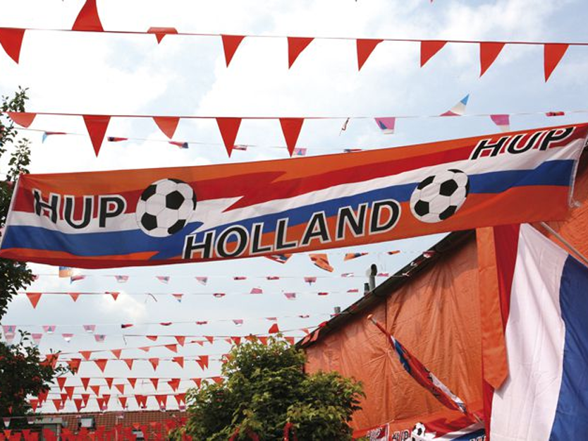 - Oranje toeters, vlaggetjes, zonnebrillen en petten