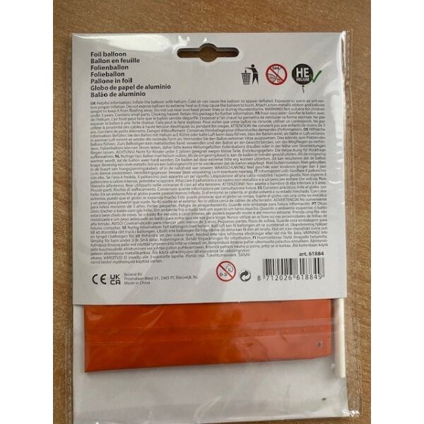 Folieballon Hart Oranje Mooie oranje folieballon (45 cm) in de vorm van een hart is perfect om te laten zien dat je helemaal achter ons Nederlands Elftal staat. Hup Holland Hup! Materiaal: 100% polyamide