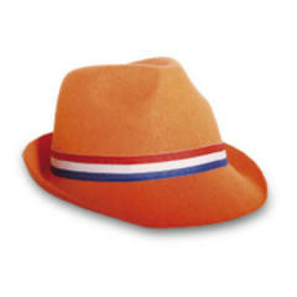 Oranje Maffia hoed met rood wit blauwe band.